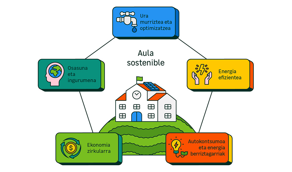 Ikasgela iraunkorrek, 5 ardatzen bidez, irtenbide onuragarriagoak lortu nahi dituzte planetarekin, ikasleen ongizaterako lagungarri izan daitezen.